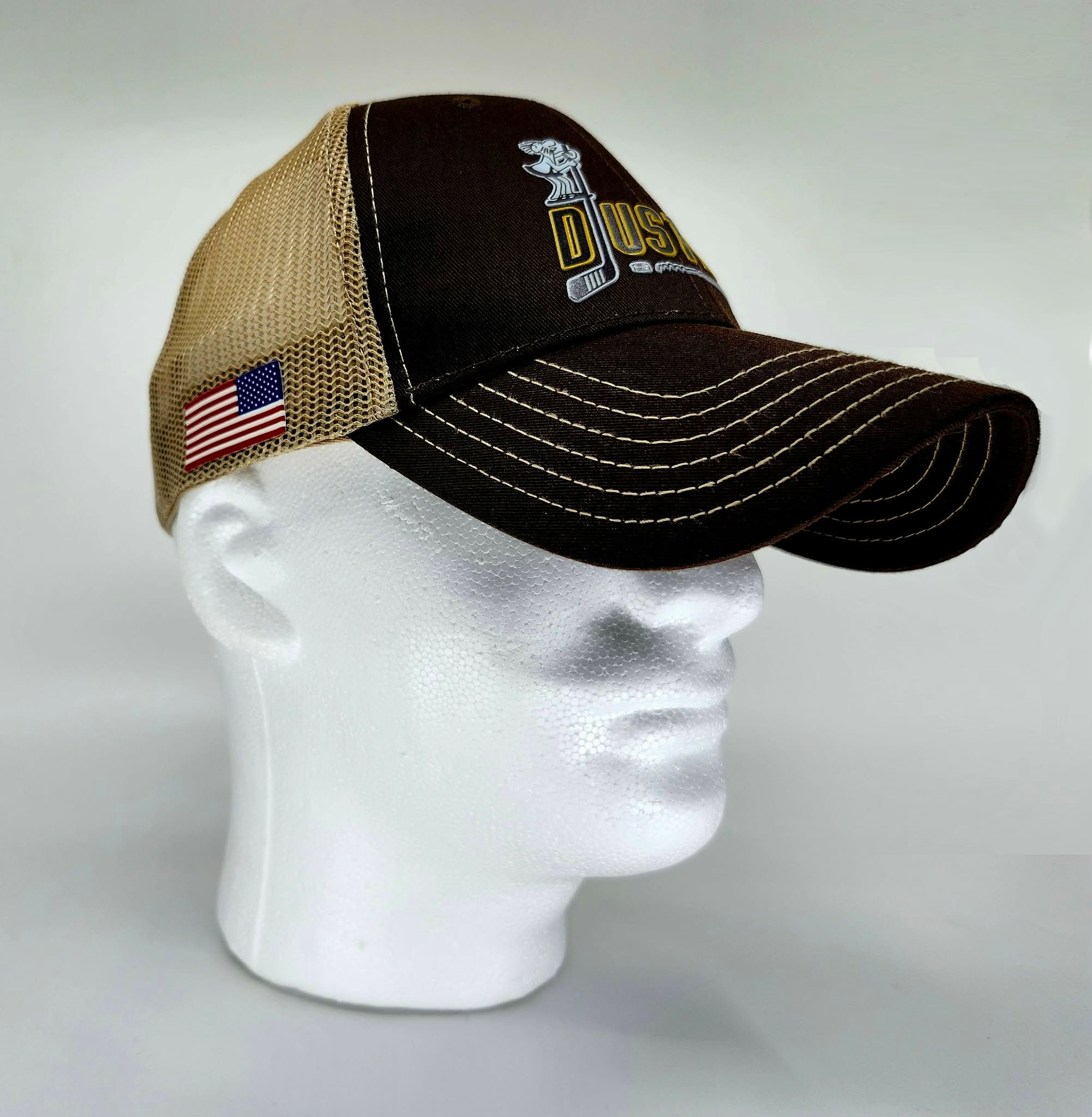 This hat is especially personal to me. I grew up watching the Dusters as a kid, and now, decades later, I’m fortunate enough to still lace up and play hockey with one of the original Dusters players. That connection to the team and its history made creating this hat something truly meaningful.