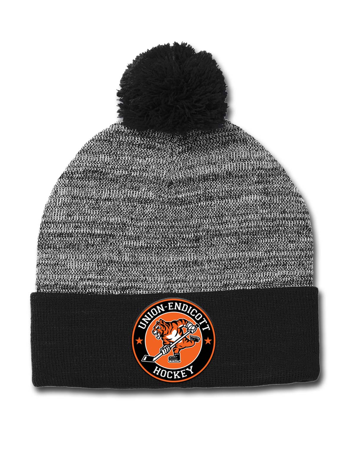 Stay warm in the stands, on the bench, or around town with this cozy U-E Hockey pompom beanie, featuring the official team emblem on the front. Available in Black/Heather Grey, it delivers the perfect blend of comfort, style, and Tiger spirit.